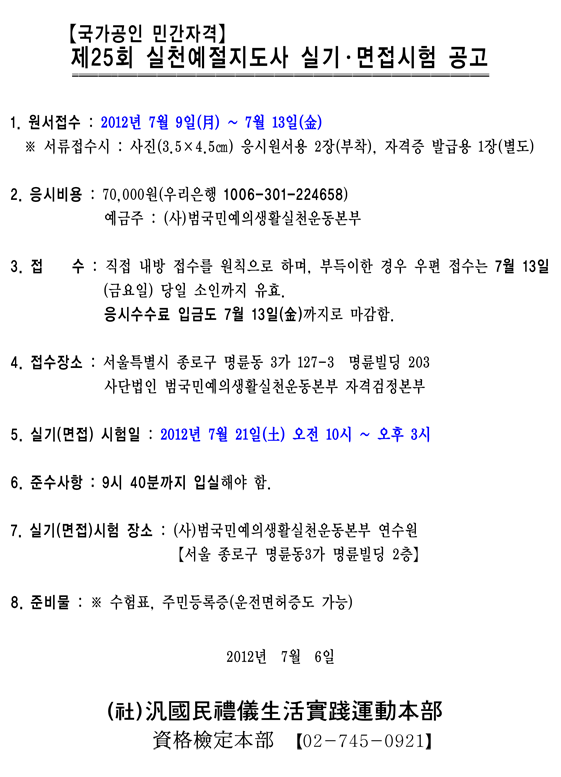 [±¹°¡°øÀÎ ¹Î°£ÀÚ°Ý] Á¦25ȸ ½Çõ¿¹ÀýÁöµµ»ç ½Ç±â ¡¤ ¸éÁ¢½ÃÇè °ø°í