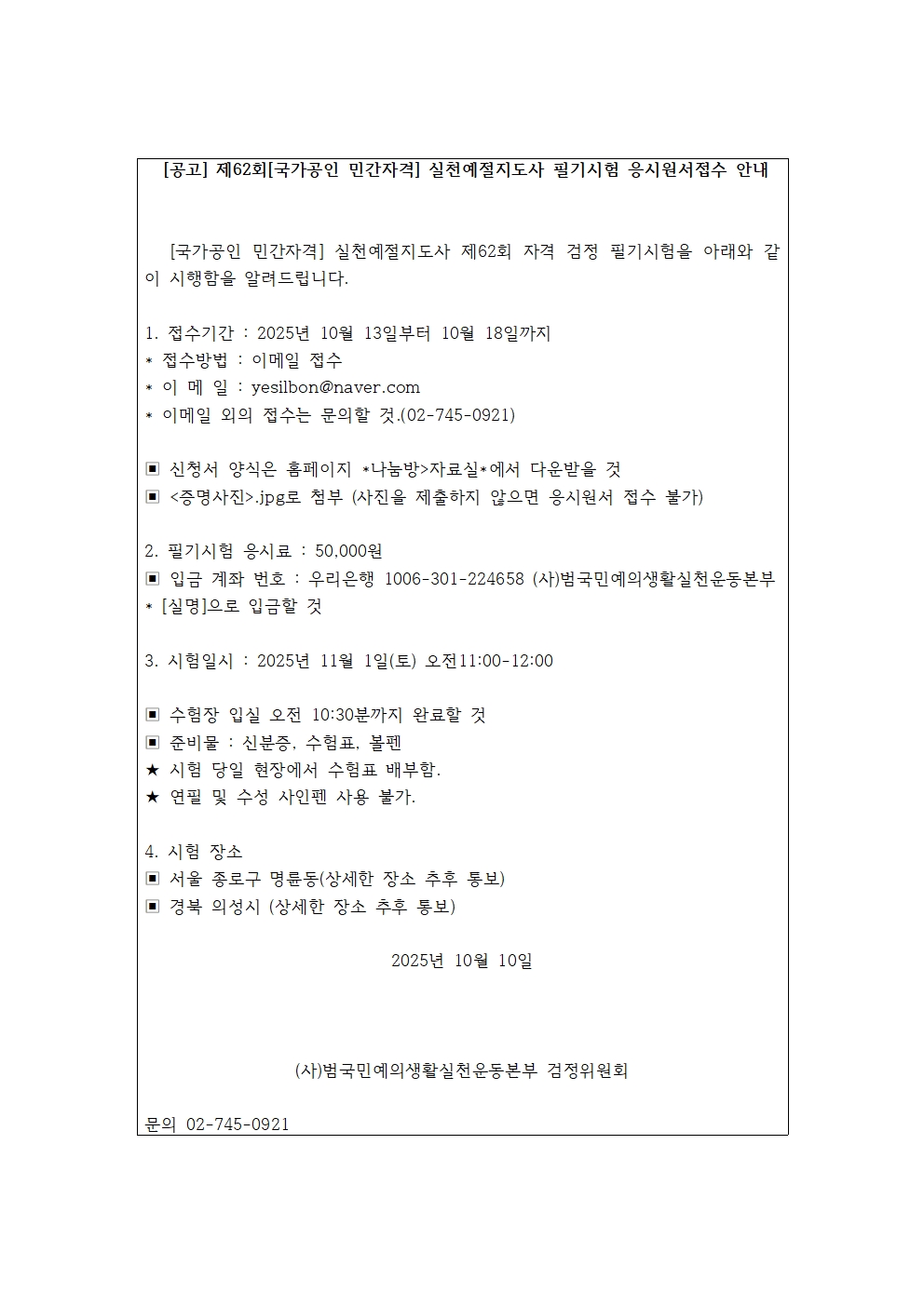 [±¹°¡°øÀÎ ¹Î°£ÀÚ°Ý]½Çõ¿¹ÀýÁöµµ»ç Á¦62ȸ Çʱ⠽ÃÇè ÀÀ½Ã¿ø¼ Á¢¼ö ¾È³» |